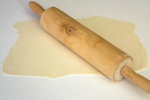 Xamir ingichka qilib yoyiladi. Ozgina un sepib yoyilsa, xamir oson yoyiladi.