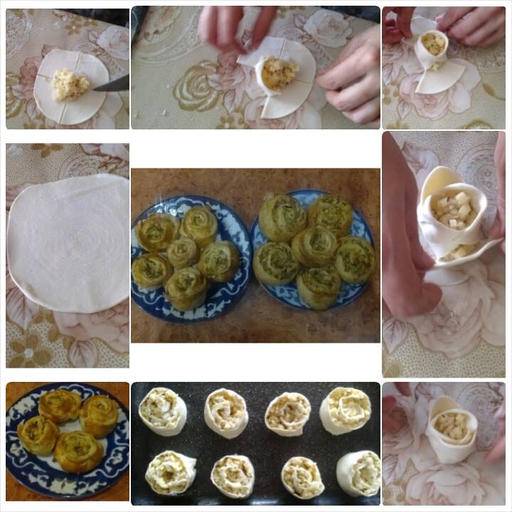 Mehmonlarni hayratda qoldirmoqchimisiz? U holda oddiygina qatlama xamirni gul ko‘rinishida tuging. Bunday pishiriqni har xil qiyma bilan pishirishingiz mumkin. Masalan, murabbo va yong‘oq aralashmasidan tayyorlangan aralashma ham, go‘sht qiymasi, dumba, to‘g‘ralgan piyoz va kartoshkadan tayyorlangan qiyma ham to‘g‘ri keladi. Pishiriq 25 daqiqada pishadi.